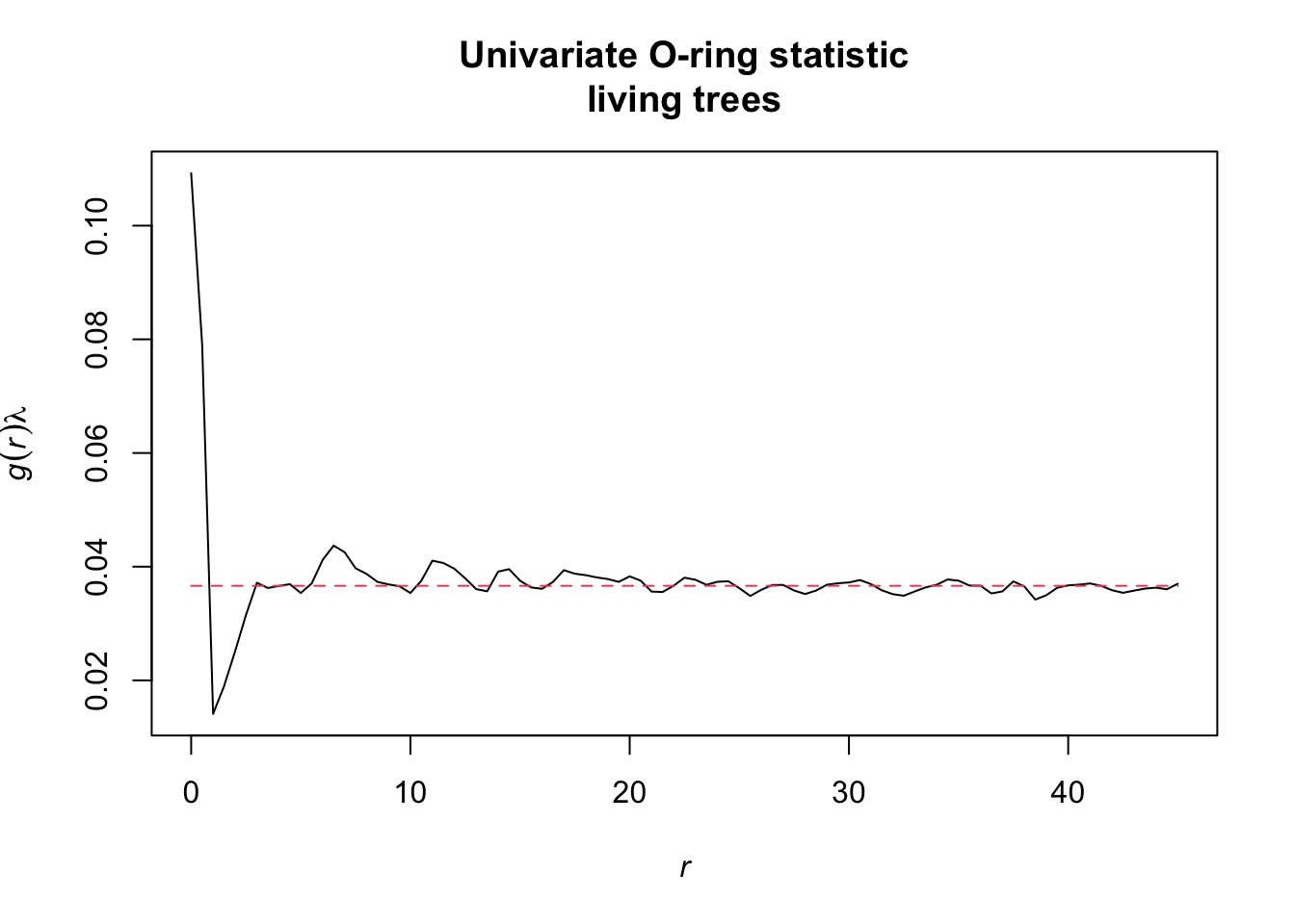 oring_statistic <- Oest(x = alive, r = seq(from = 0, to = 45, by = 0.5))